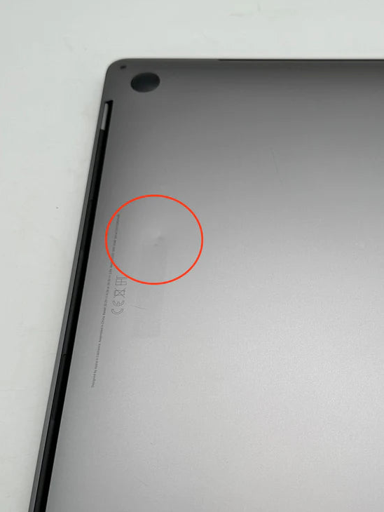 - großflächigere Verfärbungen auf dem Gehäuse (z.B. durch Sticker)
